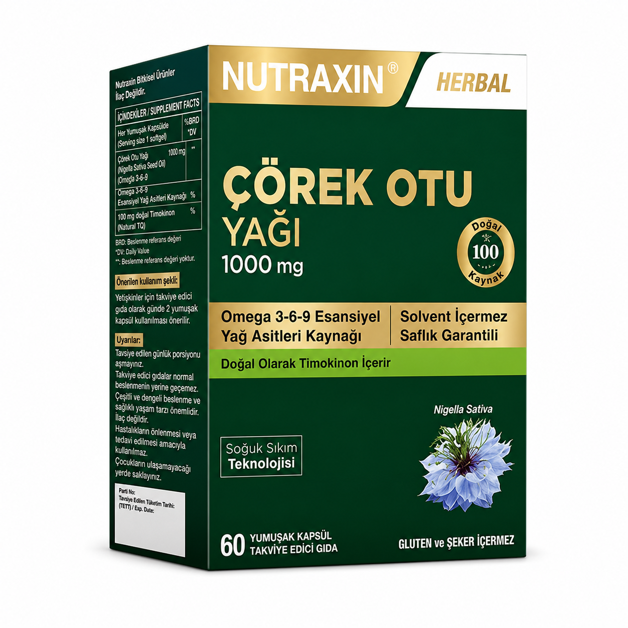 Nutraxin Çörek Otu Yağı 1000 Mg 60 Kapsül İçeriği
