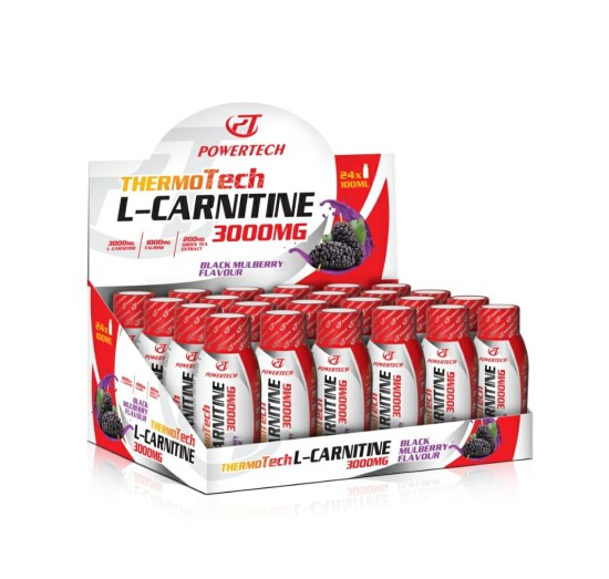 ThermoTech Thermo L Karnitin, 100 ml ve 24 shot formunda 3000 mg L-Carnitin içeren Şeftali aromalı form ve diyet ürünüdür. ThermoTech termojenik etki için taurin, kafein ve yeşil çay ile zenginleştirilmiştir.