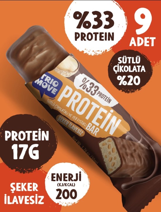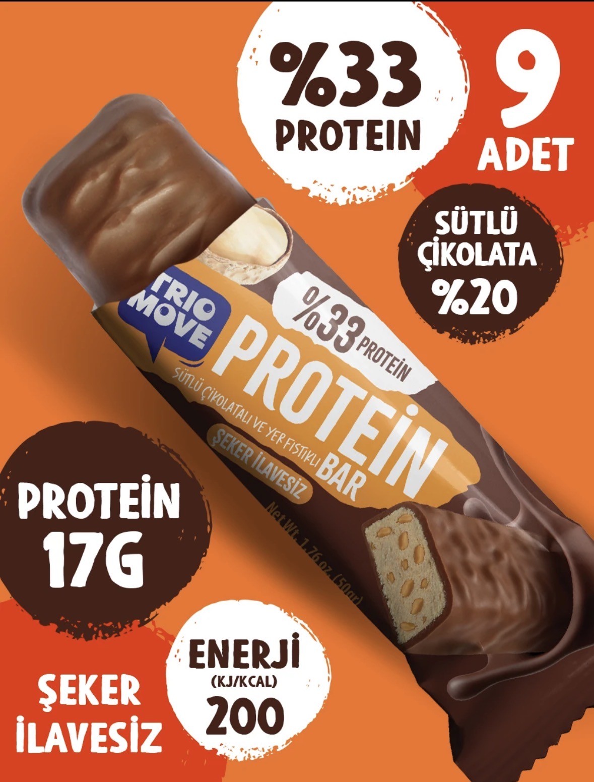 Trio Çikolata Kaplamalı Protein Bar - Yer Fıstıklı ve Sütlü Çikolatalı, %33 Protein, 50 g x 9 Adet Bilgileri